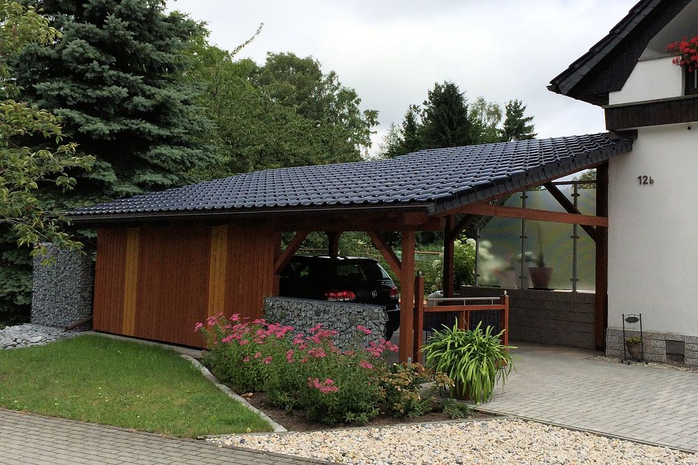 Mit unseren Carports können wir (fast) alle persönlichen Wünsche erfüllen, sei es mit der Ausstattung mit einem Abstellraum, mit einer individuellen Verkleidung oder der Dachgestaltung.