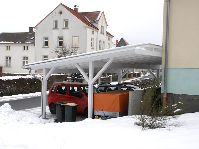 Parken Sie Ihr Fahrzeug komfortabel und preiswert unter einem Carport der Zimmerei Schreiber aus Ohorn. In unseren Carports aus Holz steht Ihr Fahrzeug eisfrei im Winter und kühl im Sommer.