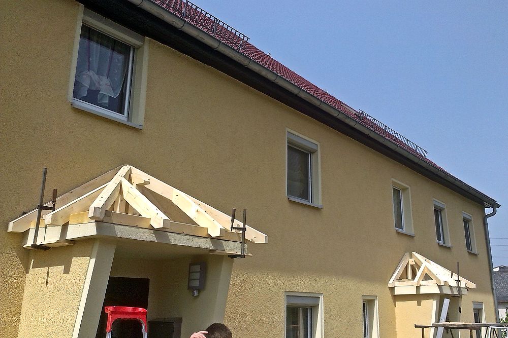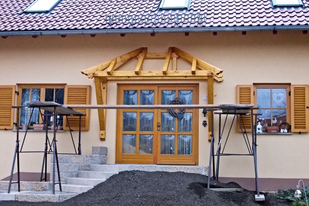 Ein Vordach schützt Ihren Hauseingang vor Witterungseinflüssen wie Regen und Schnee. Unser Zimmereibetrieb fertigt hochwertige Holzvordächer . Angepaßt an die Architektur des Hauses beraten wir Sie bei der Wahl der Ausführung ob als Pultdach, Satteldach oder Walmdach. Zahlreiche Möglichkeiten an Abstützungsvarianten stehen ebenfalls zur Auswahl.